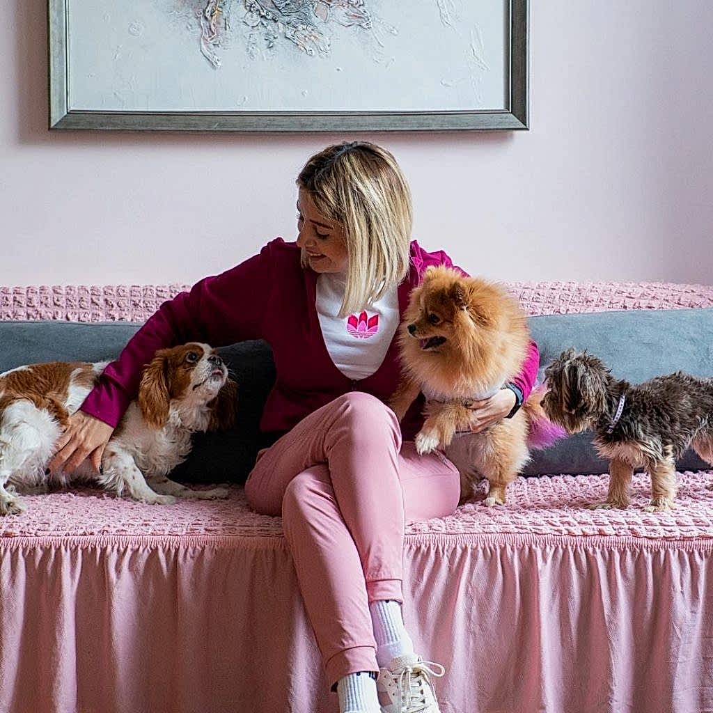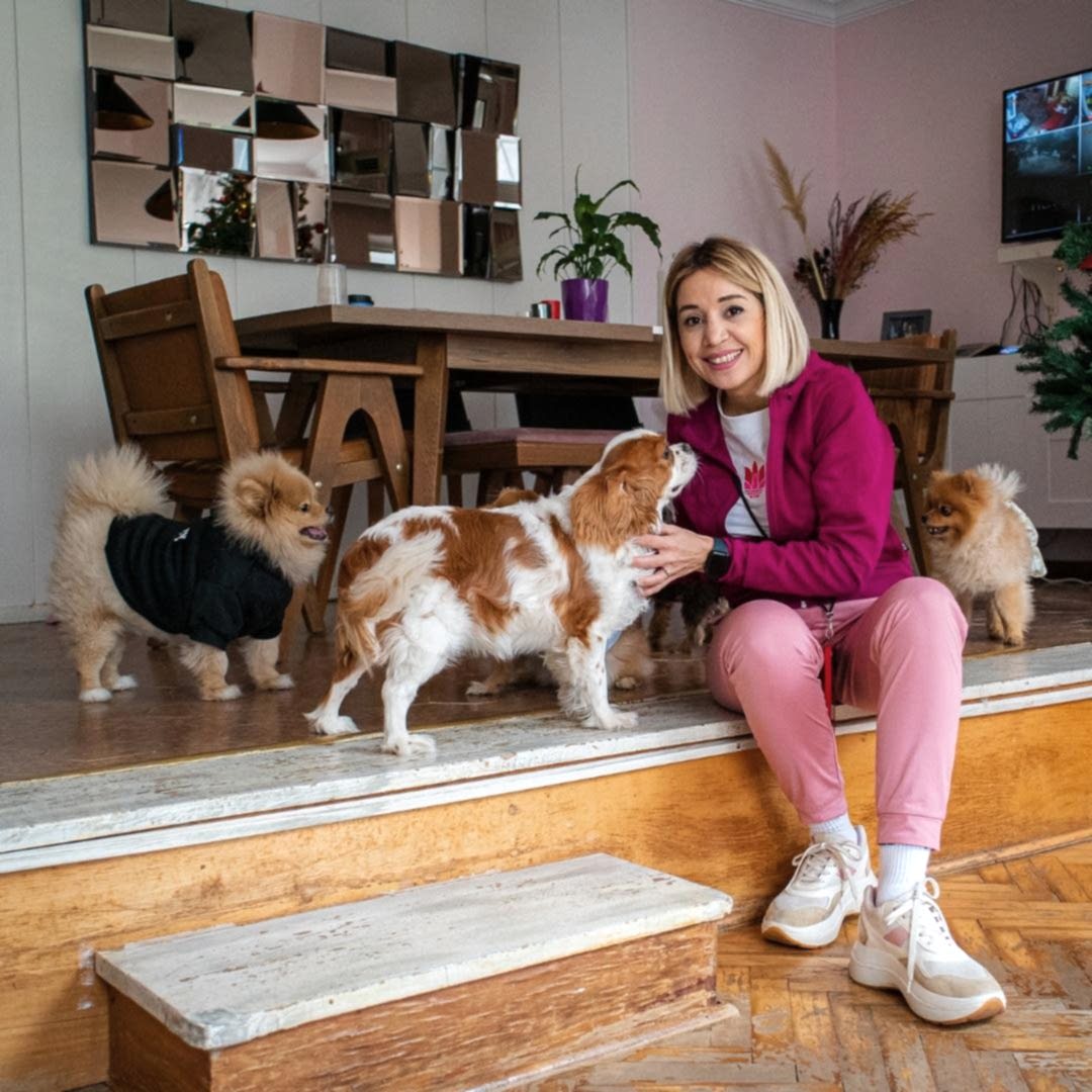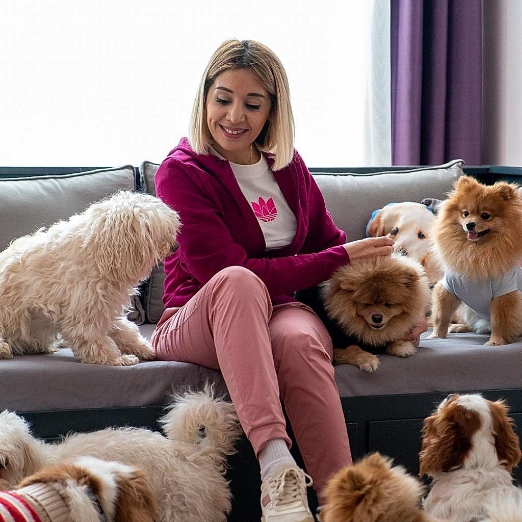 Azerbaycan'da köpek barınağı. Burcu Canal Şahin, üç sevimli köpeğe bakarken Pet Palas'ı 2012'de kurdu, diğer köpekler ve sahipleri için hizmet veriyor.